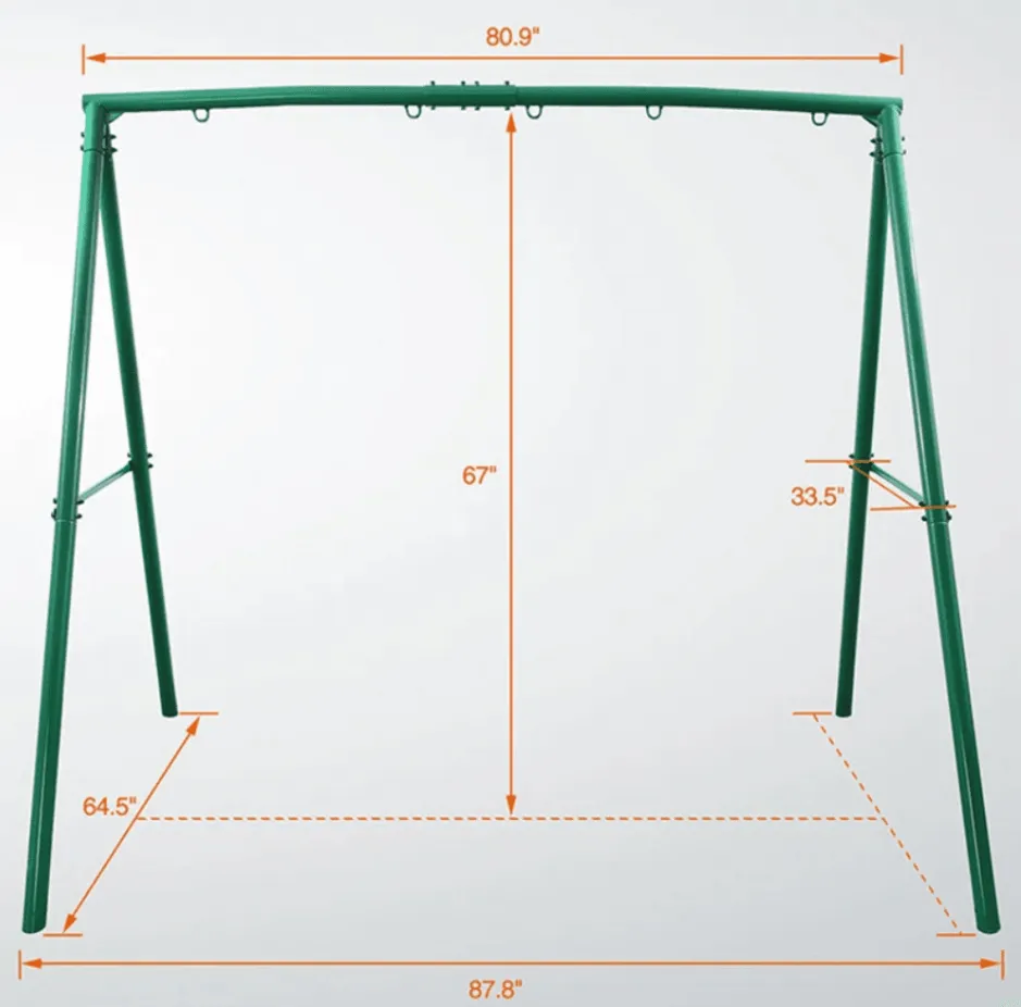 Looking for a sturdy and versatile swing frame that fits almost any type of swing? This Heavy-Duty Metal Swing Frame is designed to accommodate a variety of swings, including porch swings, saucer swings, net swings, web swings, yoga swings, hanging chairs, and more.