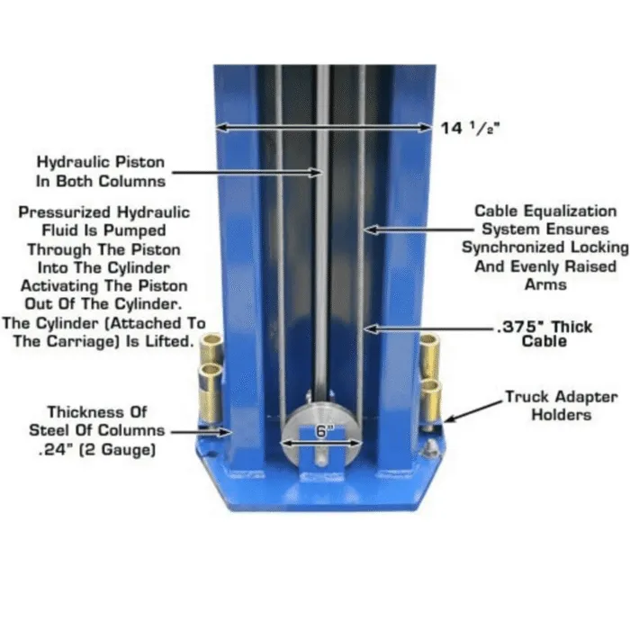 - “Padded” Shut-Off Bar – Prevents vehicle damage from excessive lifting height.