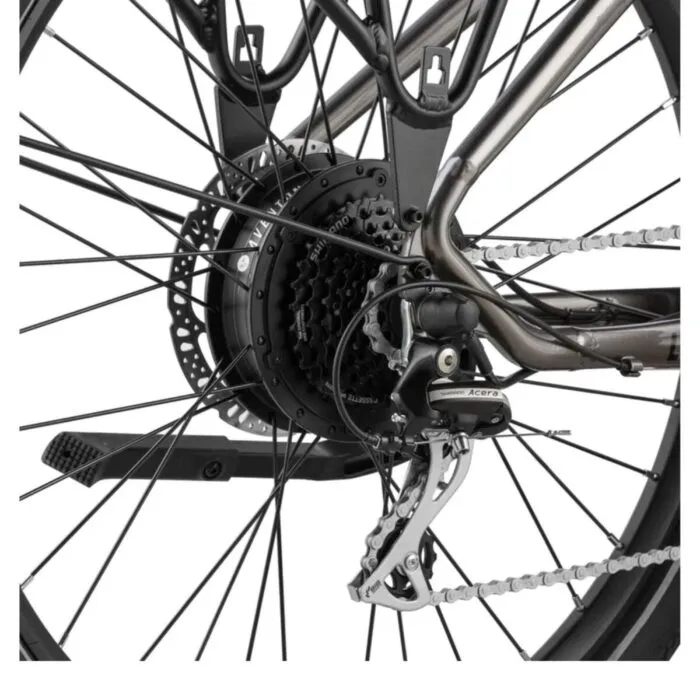 - Hydraulic Disc Brakes & 8-Speed Drivetrain: Provides smooth shifting and precise braking power, even on busy urban streets.