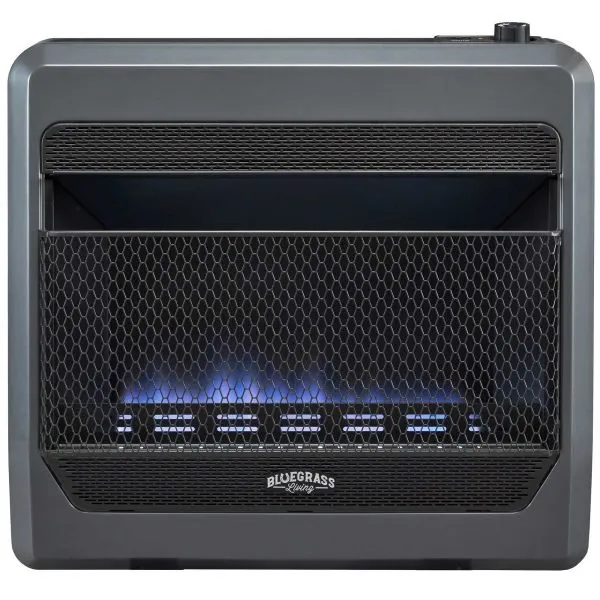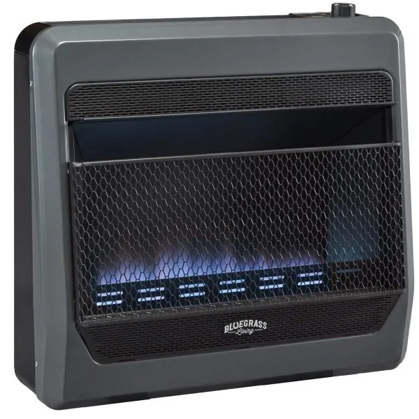 The Bluegrass Living ventless blue flame gas wall space heater operates on Natural Gas and gives you 30,000 Maximum BTU of reliable supplemental heat that can heat up to 1,400 sq. ft of living space. The space heater is perfect for not only just taking the chill out of the room but also for keeping your area warm on even the coldest winter days.