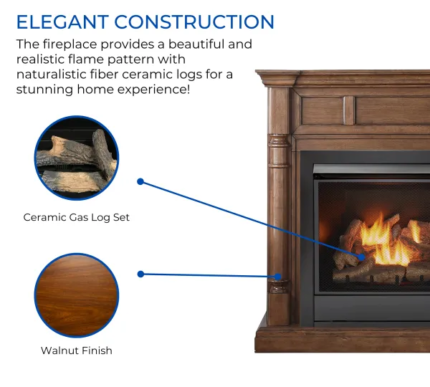 The Duluth Forge Ventless Linear Wall Gas Fireplace features a slim profile design combined with powerful heating performance and patented Dual Fuel Technology. Its elegant linear flame is enhanced by a hand-painted ceramic fiber log, creating a beautiful glowing effect while efficiently heating spaces up to 1,400 sq. ft. With 5 micro-adjustable heat settings and a built-in thermostat, this unit helps maintain a consistent, comfortable temperature and keeps your utility costs low. The push-button piezo ignitor offers quick, reliable startup.