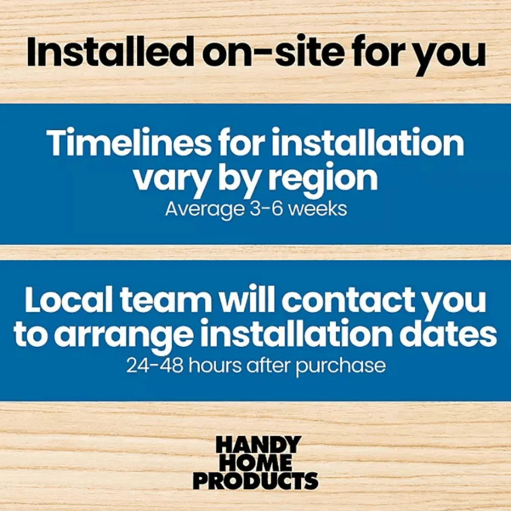 - Handy Home Products will contact you a few days after purchase to schedule installation.