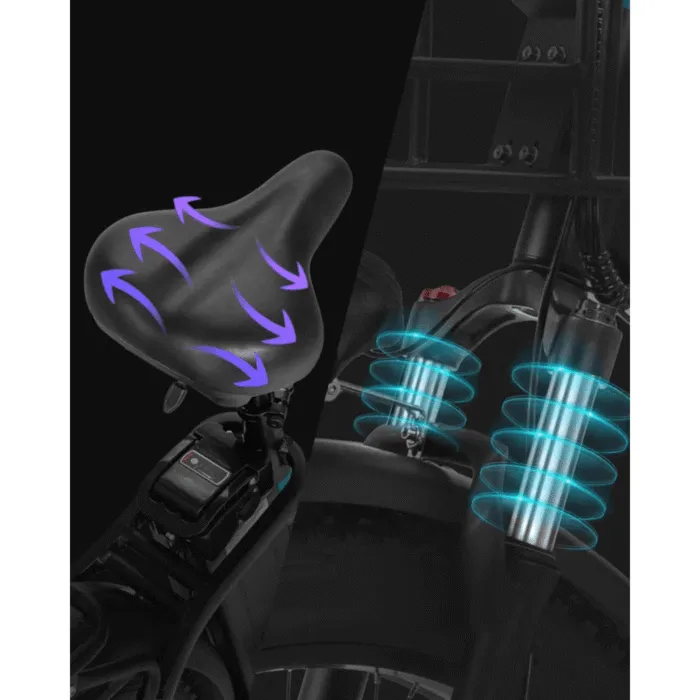 • Fat Tire Stability: Durable fat tires provide superior grip and stability on a variety of surfaces, from rocky mountain paths to urban pavements.