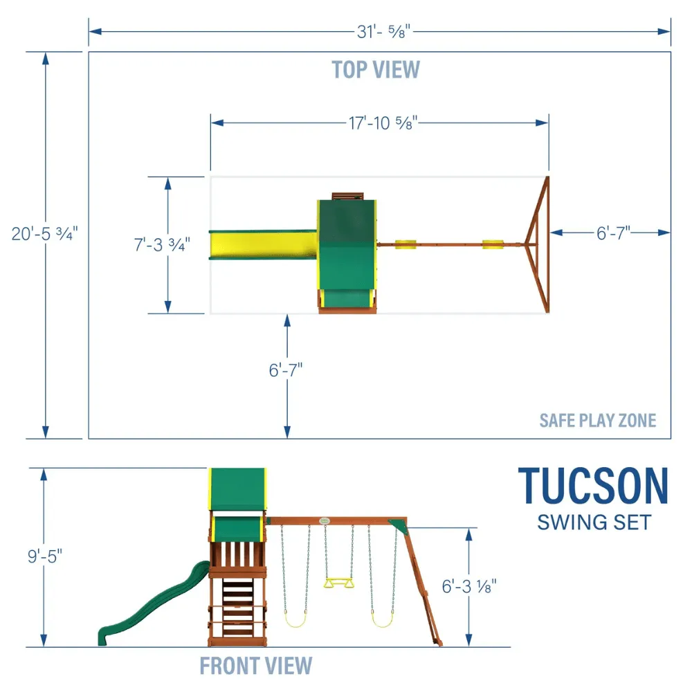 Give your kids a fun and safe place to play with the Tucson Swing Set—a backyard essential designed for adventure, creativity, and endless smiles!