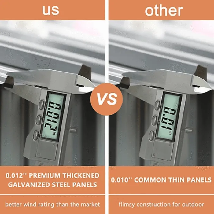 - Sturdy Galvanized Steel ConstructionRust and corrosion-resistant for long-lasting durability. Weather-resistant panels protect against rain, wind, and sun exposure.