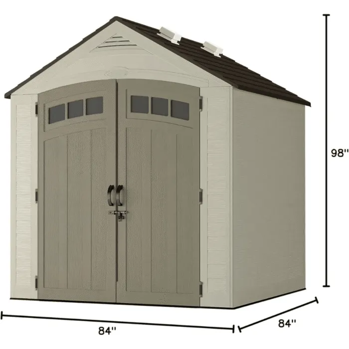 - Compact Yet Spacious Storage SolutionIdeal for storing bikes, tools, lawn equipment, and outdoor accessories.Space-efficient 7′ x 7′ footprint maximizes storage capacity without taking up too much yard space.