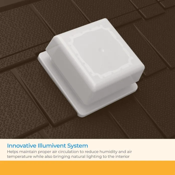 - Natural Lighting & VentilationFour built-in windows allow ample natural light, improving visibility inside the shed.IllumiVent™ system provides proper airflow, reducing humidity and maintaining a comfortable interior.